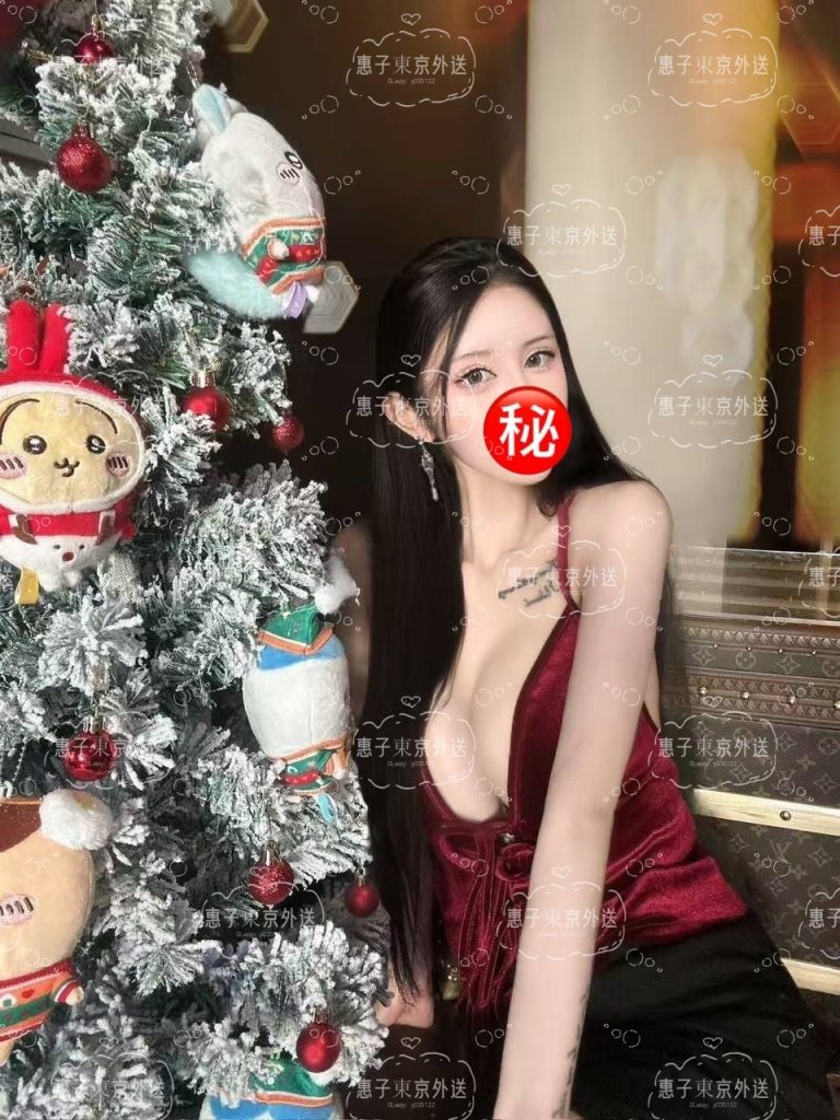 高身長でスタイル抜群、赤いサテンキャミが魅力的な谷間を強調。